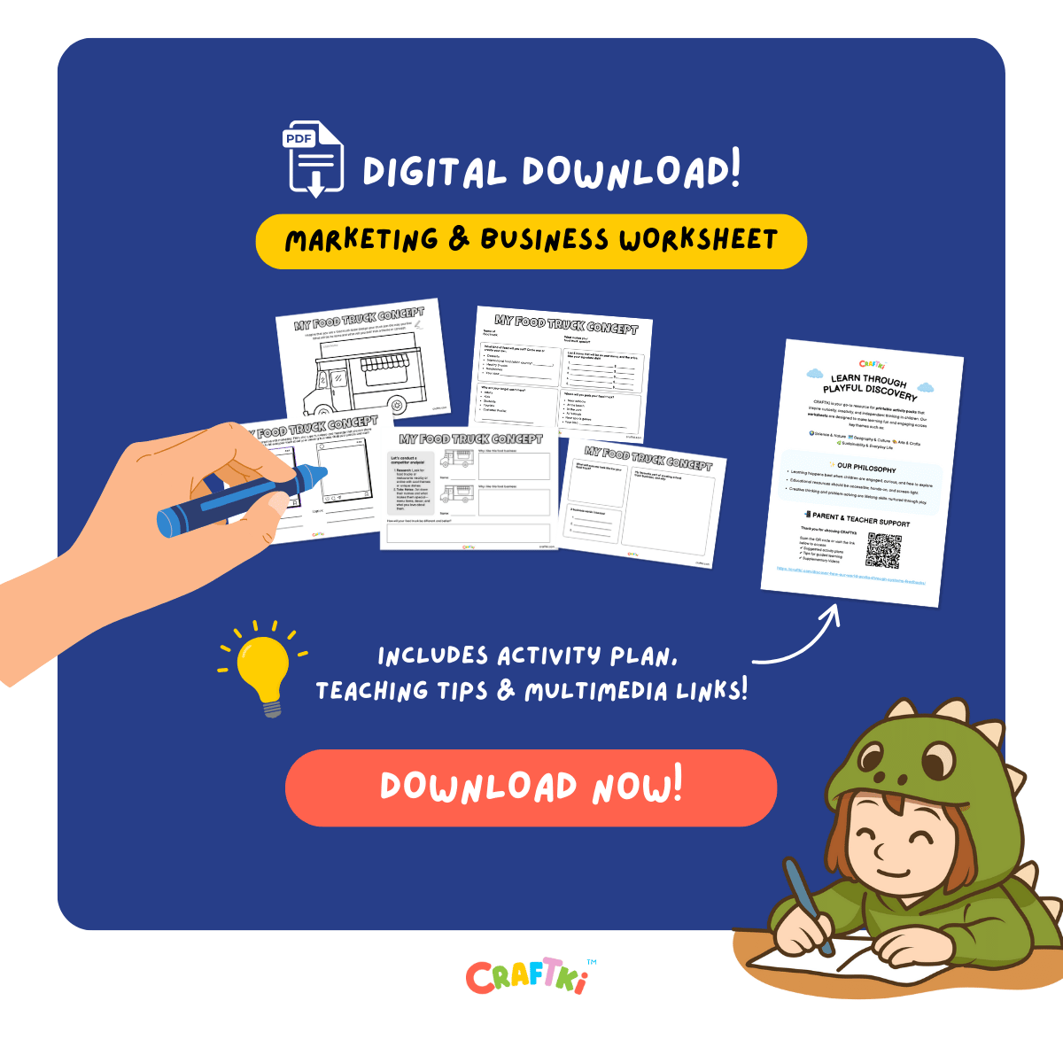 CRAFTKI is a creative educational brand offering beautifully designed, printable learning resources that turn real-world concepts—like entrepreneurship, environmental science, and tech literacy—into fun, hands-on activities. We combine curriculum-aligned goals with child-led exploration to spark curiosity and build confidence.
