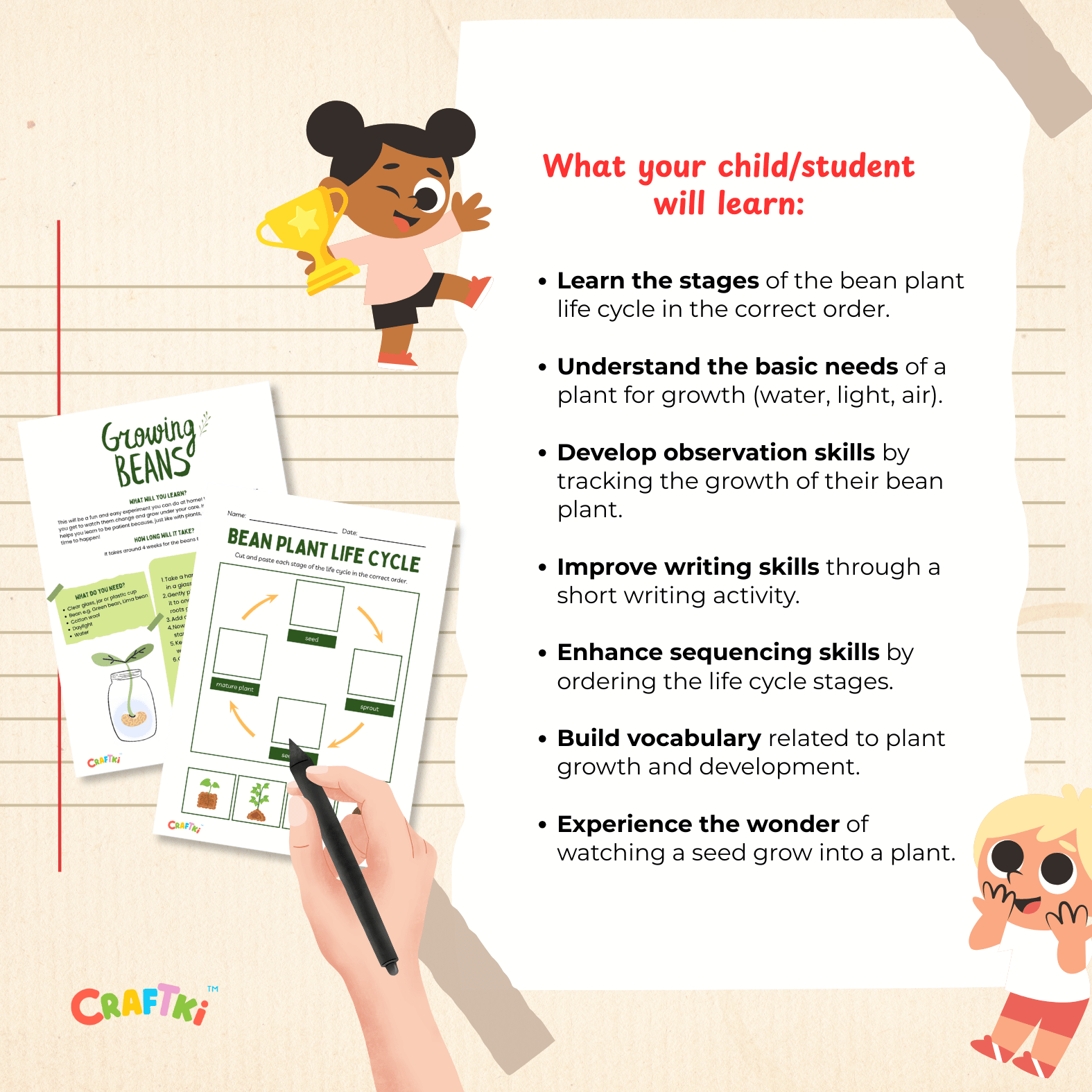 Download our "Growing Beans" activity worksheet below and watch the magic of plant growth unfold!