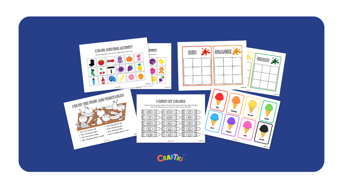 The goal of this activity pack is simple: to help children develop their colour recognition, sorting, and matching skills while encouraging creativity and fine motor development. Through playful, visual exercises, children will learn to identify, name, and categorise common colours with ease.